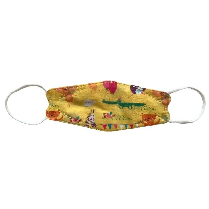 Produktdetails: Gelbe farbige Kinder Schutzmasken mit Tiermotiven aus dem Zoo auf der Maske verteilt. 3D Fischform Struktur Kindermaske für bessere Atmung. Korbform Maske mit elastischen Gummibändern und Nasenbügel sodass die Maske eng am Gesicht anliegt. KF94 Schutzmasken sollten nach einmaligem Gebrauch sorgfältig entsorgt werden.