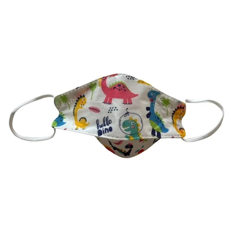 Produktdetails: Dreidimensionale Kindermasken mit Korbform / Fischform für besseres Atmen. Farbige Kinder Schutzmaske mit bunten Dinosaurier Motiven auf der gesamten Masken verteilt. KF94 Kinder Schutzmasken sind für den einmaligen Gebraucht gedacht und sollten danach sorgfältig entsorgt werden. Prävention Schutz vor Tröpfchen, Aersolen und verschmutzer Dunst in der Luft.