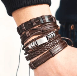 Produktdetails: Armband Set aus 5 diversen Lederbändern.
