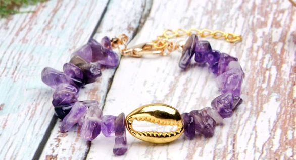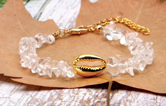 Produktdetails: Armband aus schönen Steinen in diversen Farben mit goldiger Muschel.