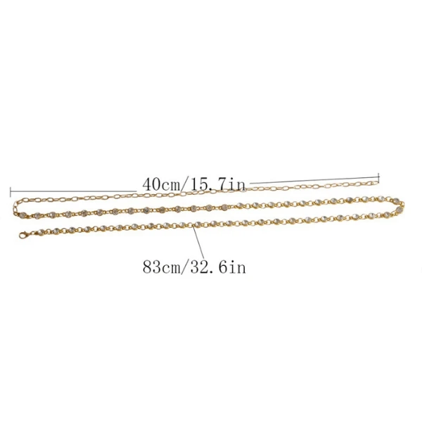 Produktdetails: Bauchkette mit kleinen Kreisen und transparenten Steinen. Bauchkette, Körperschmuck Damen.
