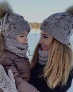 Produktdetails: Mutter und Tochter im Partnerlook mit der selben Fellbommel Wintermütze, wie süss ist das bitte? Kuschelige gestrickte Beanie Wintermütze mit Zopfmuster und braunem Kunstfell Bommel auf der Mütze. Wintermützen für Gross und Klein, perfekt für den Winter. Beanies für Mutter und Tochter in vielen Farben.