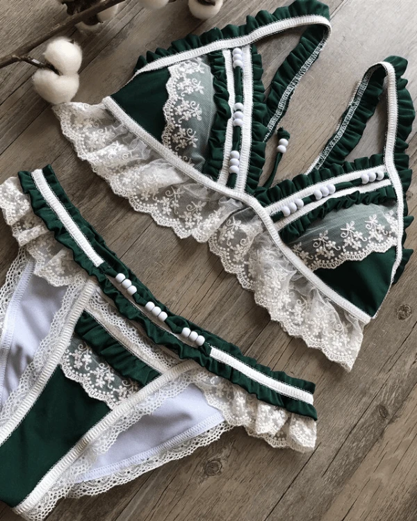 - Produktdetails: Bohemian Spitzen Bikini Ober- und Unterteil. Mit vielen süssen Details. Hippie Chic Sommer Bikini.