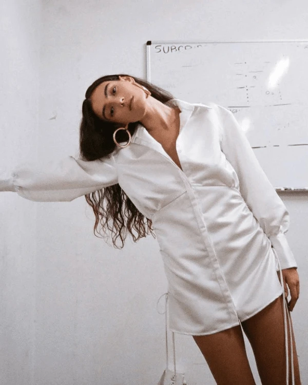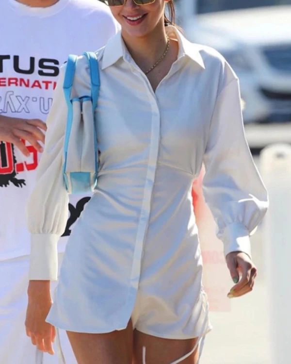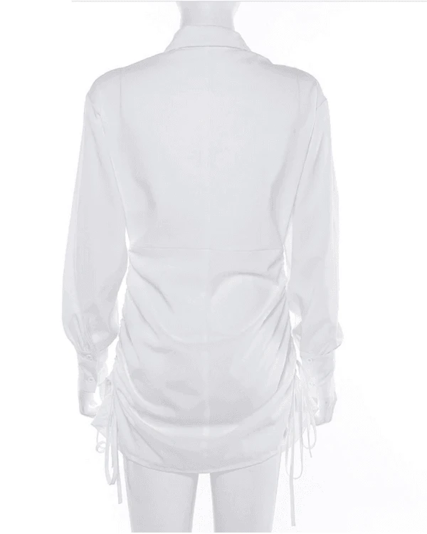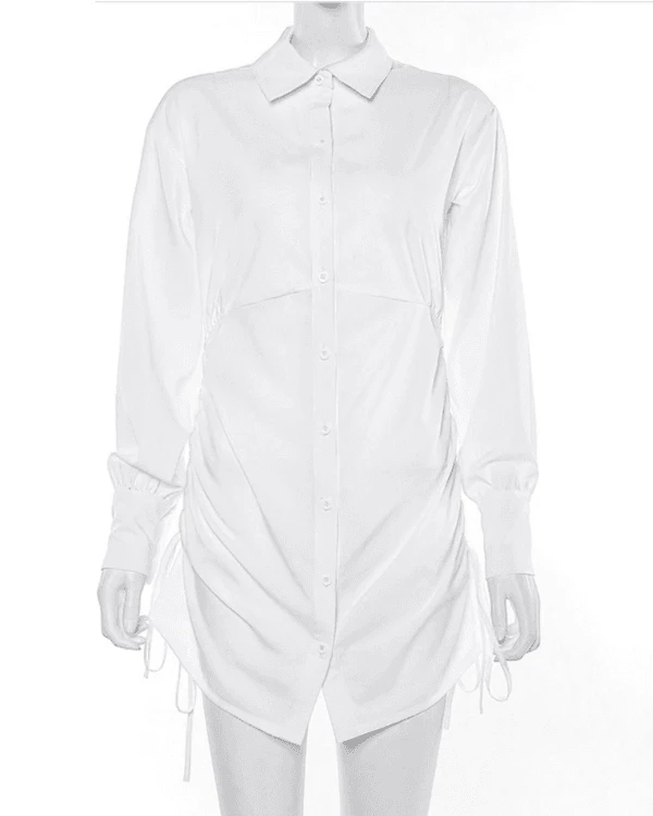 Produktdetails: Lange Bluse mit Kragen. Blusenkleid Damen Tailliert und kann auf beiden Seiten angezogen werden damit die Bluse einen stylischen Effekt bekommt. Lange Damen Bluse mit Schnurr auf der Seite zum hochziehen.