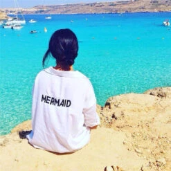 - Produktdetails: lockere lange Bluse mit MERMAID Schrift auf der Rückseite. Bluse ist Hinten länger geschnitten als Vorne. Vokuhila Style.