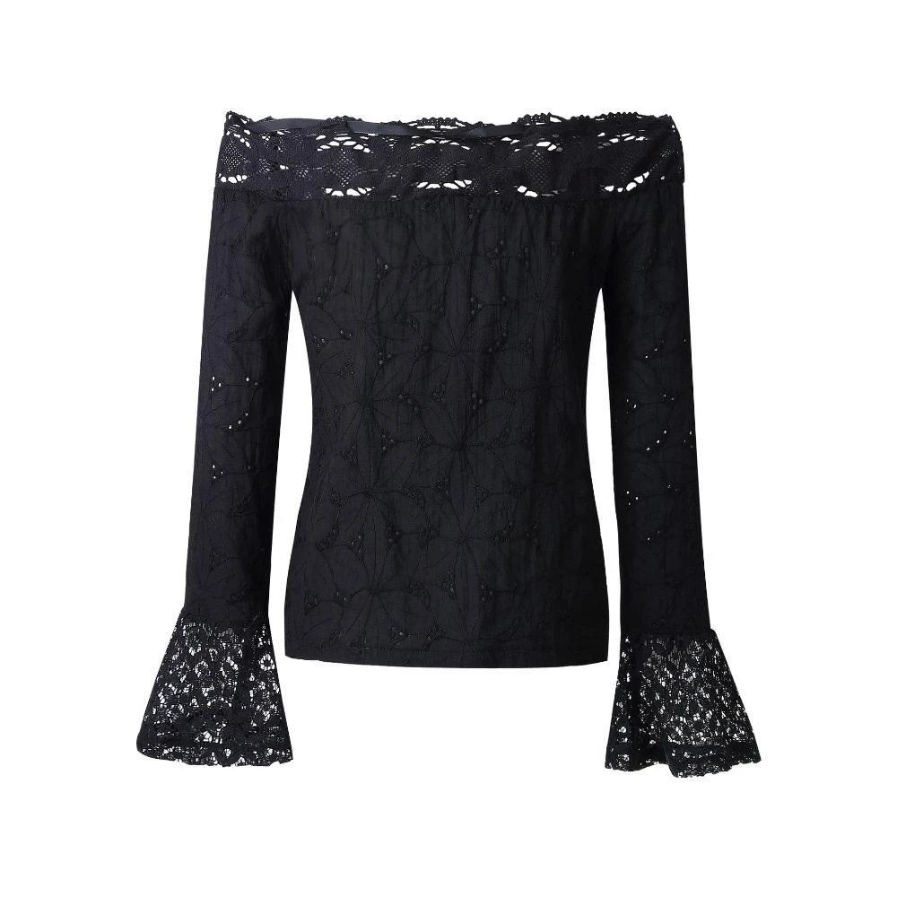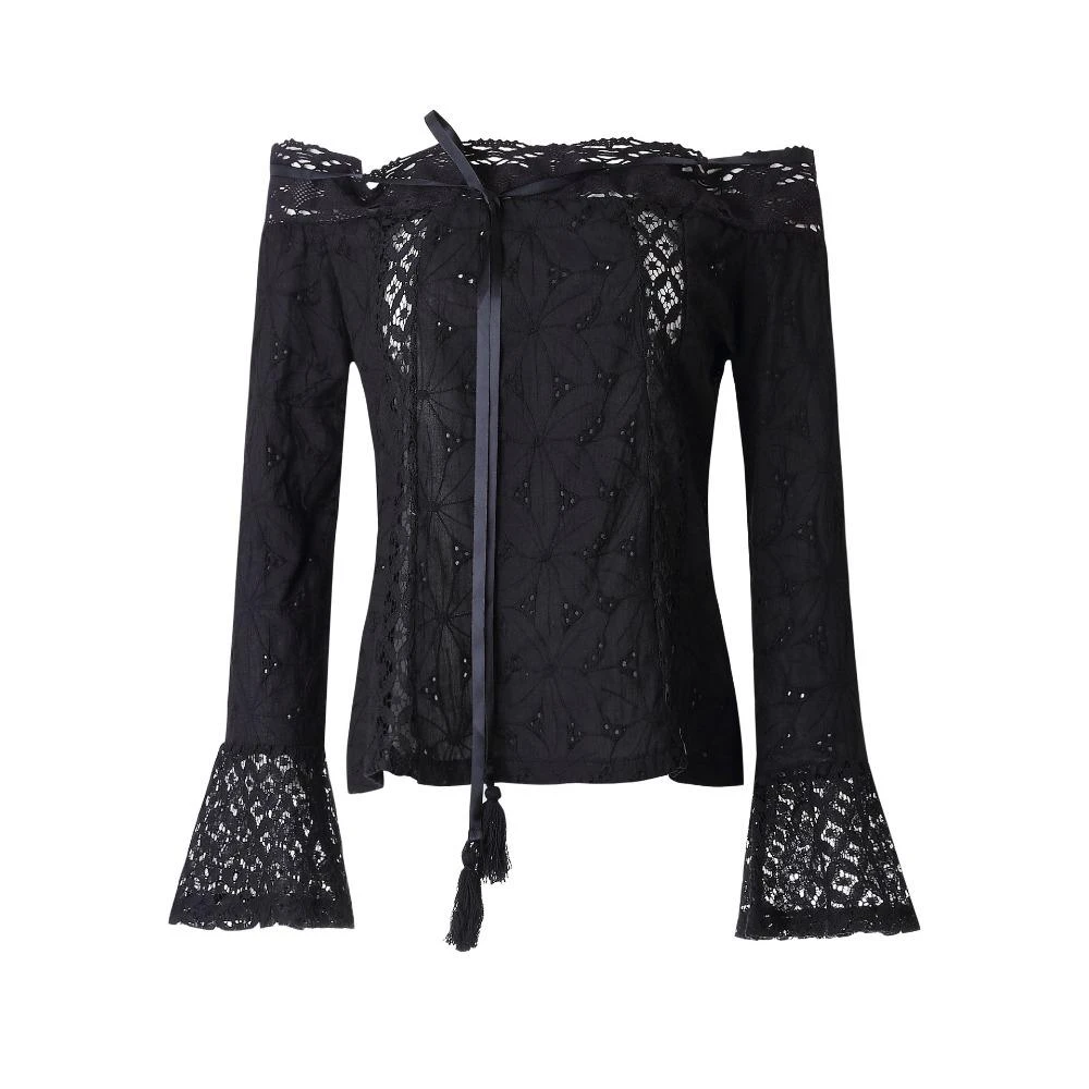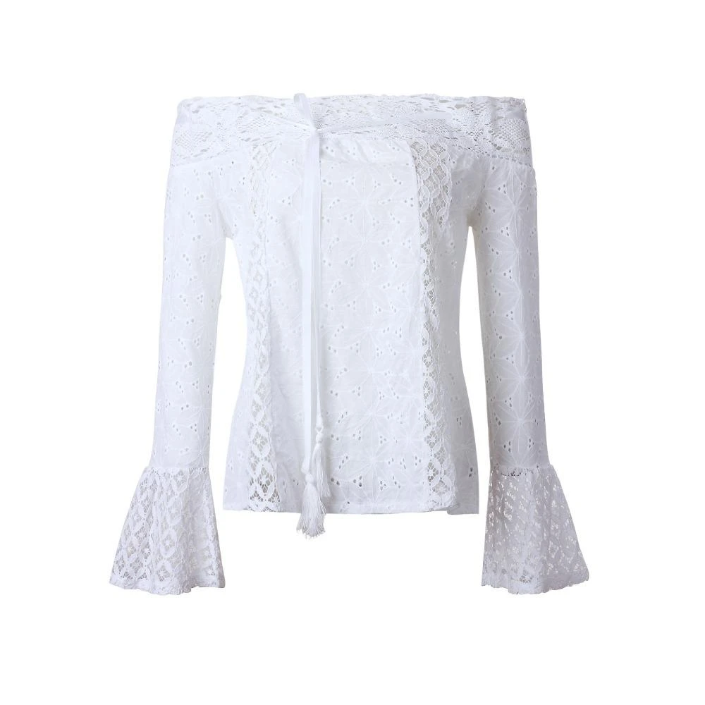 Produktdetails: Schulterfreie Bluse mit Spitzen Stoffen. Bohemian langarm Bluse mit weiten Ärmeln und Schulterfrei. Boho Fashion Blusen Shirt Damen.