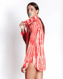 Dare to be different in this smoking hot red blouse that speaks volumes about your fiery yet sensuous nature. It is not only funky but classy. It surely defines the noble simplicity. Add to your wardrobe this vibrant red tie and dye blouse with fashionable vertical lines along its length.