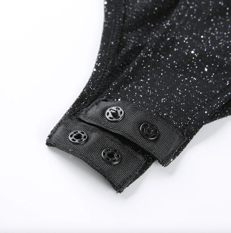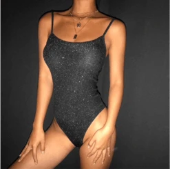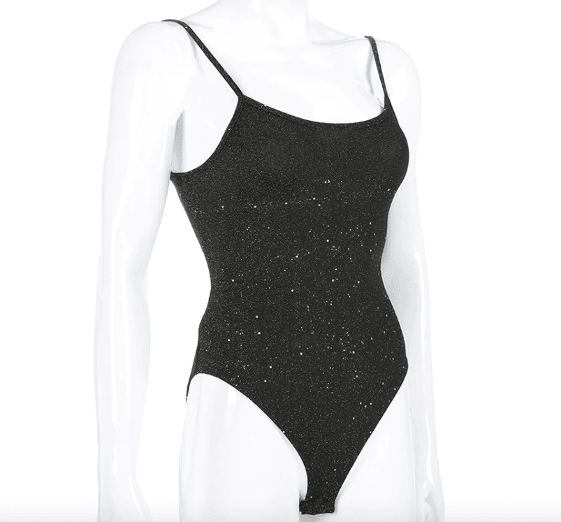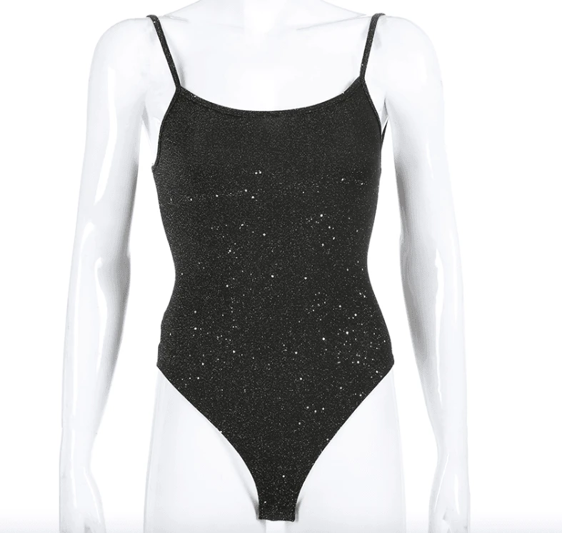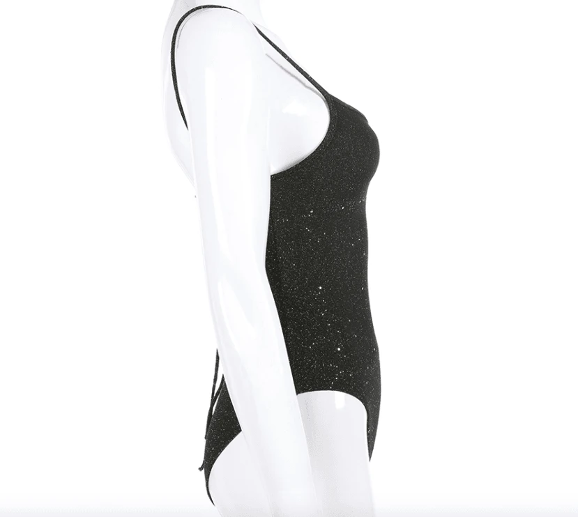 Produktdetails: Bodysuit / Body mit offenem Rücken zum Schnürren. Stoff mit Glitzer Effekt. Perfektes Party Outfit.