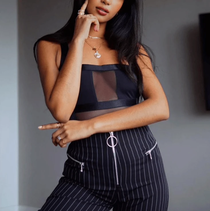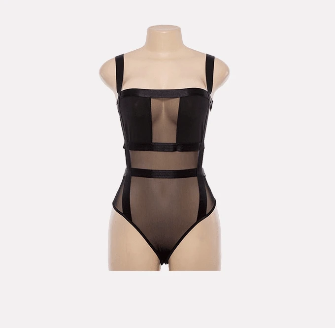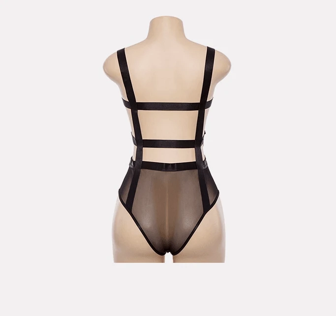 Produktdetails: Bodysuit / Body aus Streifen, offenem Rücken und transparenten Ausschnitten.