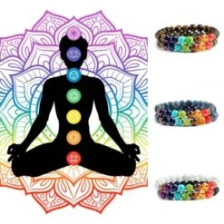 Produktdetails: Spirituelles Armband Set aus zwei elastischen Perlenarmbänder aus Naturstein Perlen. Von Naturstein, Tigerauge Stein, Vulkanstein und mehr energievolle Steinperlen gemischt mit farbigen Perlen in den Chakra Farben. Unisex Armband mit Chakra Perlen Farben für das Handgelenk.