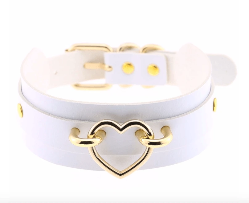 Produktdetails: Choker Kunst Leder Halskette mit Schnalle und Herz auf der Vorderseite aus Leichtmetall. Fetisch, Kinky Modeschmuck Choker in vielen Farben.