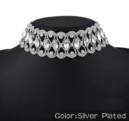 Produktdetails: Choker Halskette aus grossen Kristall Steinen. Glitzer Steine Choker Halsketten. Perfekter Eye-Catcher.