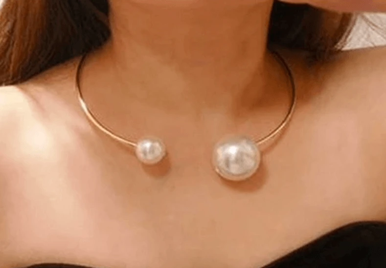 - Produktdetails: Choker Halskette / Halsreifen mit zwei grossen Perlen am Ende.