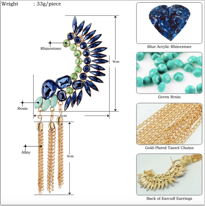 - Produktdetails: Ohrring für das ganze Ohr. Ear Cuff mit goldenen Anhängern und Strasssteinen in diversen Farben. Preis pro Stück. Der Ear Cuff ist für das linke Ohr!