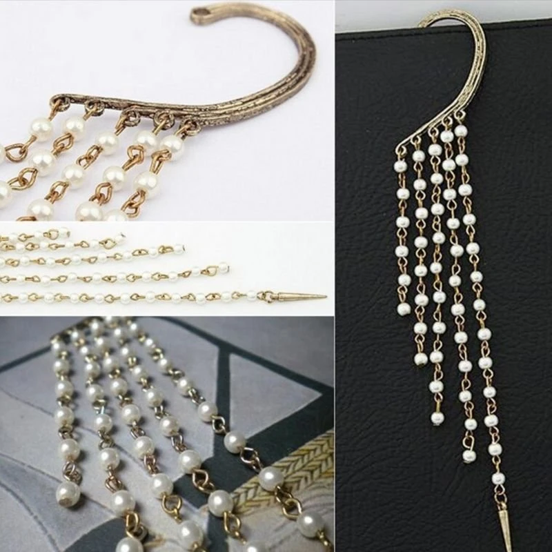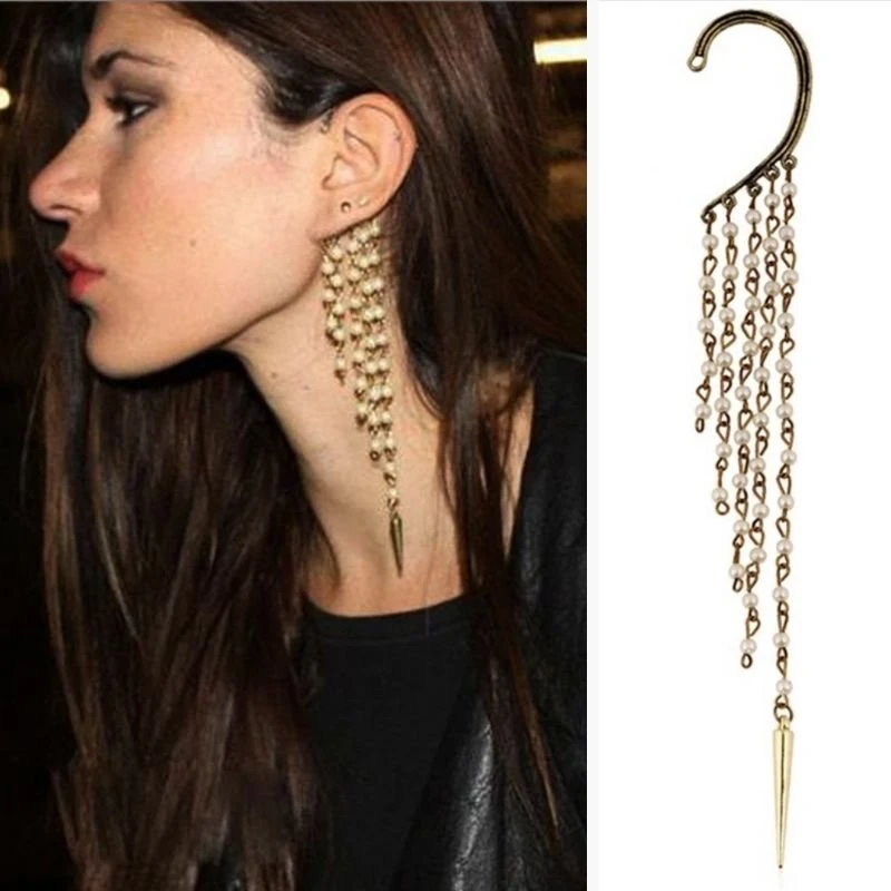 Produktdetails: Ear Cuff Ohrringe mit langem asymmetrischen Perlen Anhängern. Stillvolle Boho Style Modeschmuck mit langen Anhängern an dein Ohren. Ear Cuff kann an jedem Ohr getragen werden, ohne Löcher zu haben.