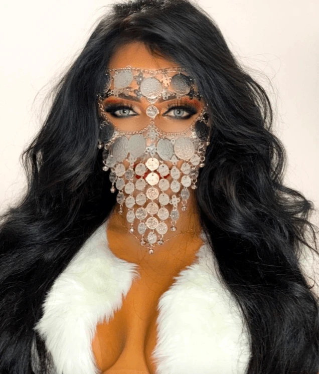 Produktdetails: Diese extravagante Gesichtskette ist der perfekte Festival-Accessoire im Burning Man Style. Die Kette besteht aus runden Kreis-Münzen und verdeckt Mund, Nase und Stirn, während nur die Augen freiliegen. Der Modeschmuck sorgt für einen einzigartigen Look und ist perfekt für Festivals oder andere Veranstaltungen geeignet. Die Gesichtskette lässt sich einfach anbringen und abnehmen und verleiht Ihrem Outfit das gewisse Extra.