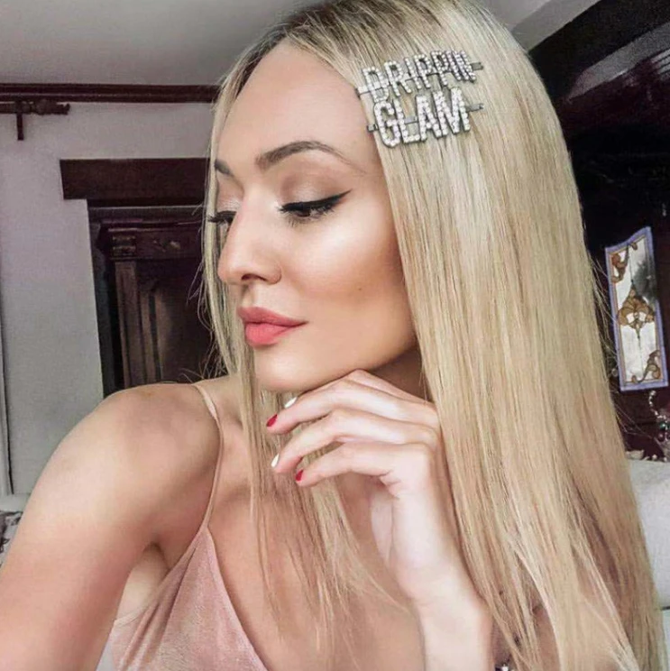 - Produktdetails: XXL Haarklammern mit Wort aus Glitzer Steinen