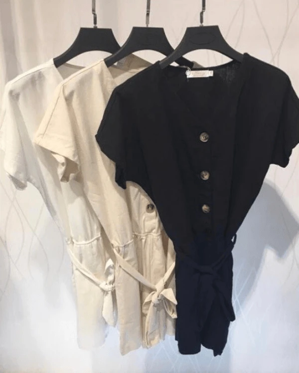 - Produktdetails: Lockerer Jumpsuit mit kurzen Hosen und T-Shirt Schnitt. Zum Knöpfen auf der Vorderseite. Grosse schöne Knöpfe und leichter Kragen. Sehr angenehm zum tragen.
