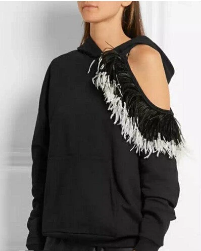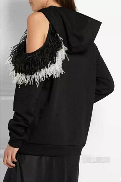 - Produktdetails: Exklusiver Kapuzenpullover / Hoodie mit geöffneter Schulter und Federn Schmuck. Handwäsche.