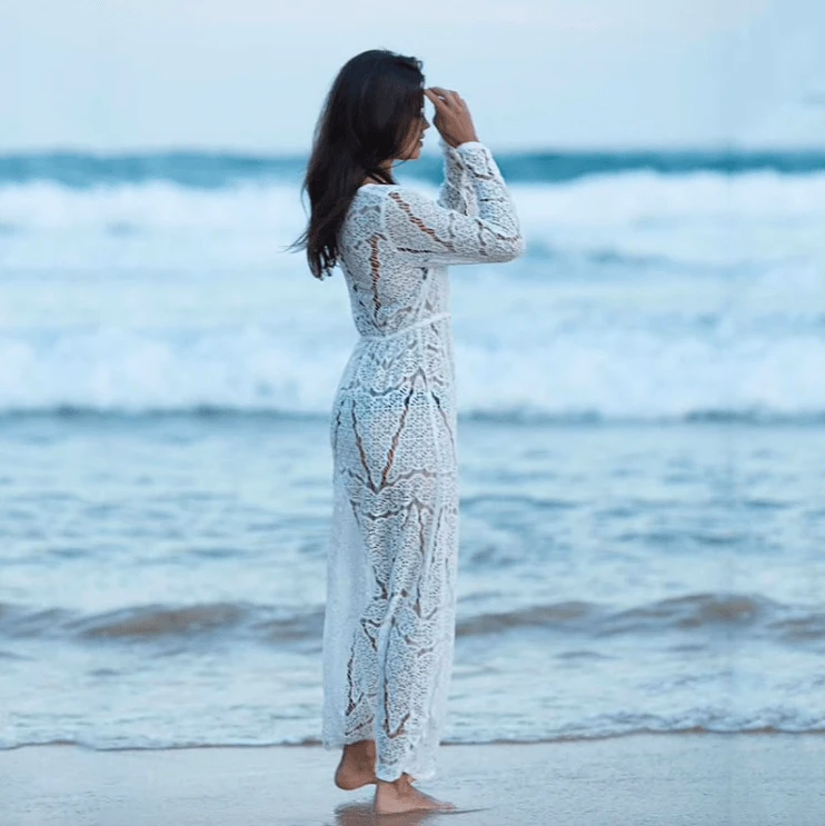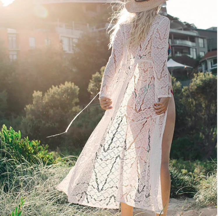 Produktdetails: Schöner langer Kimono Tunika aus Spitzen / Lace. Bohemian Strand Style Kimono / Cardigan zum Binden.