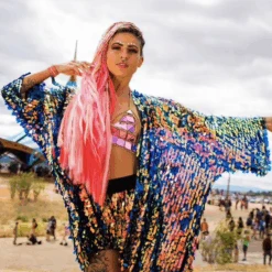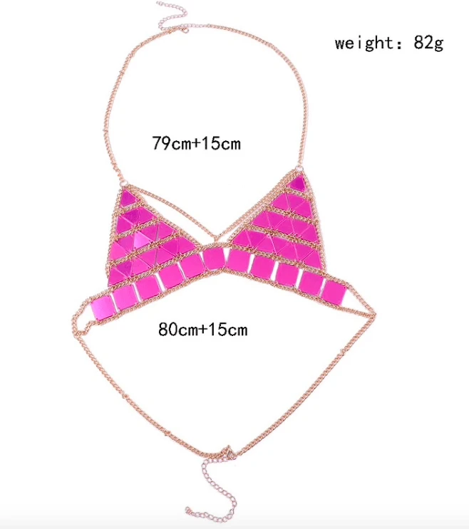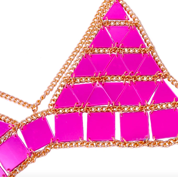 Produktdetails: Körperschmuck BH in pink mit goldenen Ketten. Perfektes Festival Accessoire.