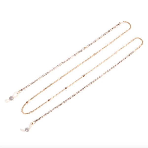 Produktdetails: Maskenkette aus feiner Kette und Glitzersteinen. So kannst du deine Maske wie eine Halskette um den Hals tragen. Fashion Style Glitzer Masken Kette. 2 in 1 Kette, kann als Brillenkette oder Maskenkette verwendet werden.