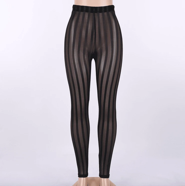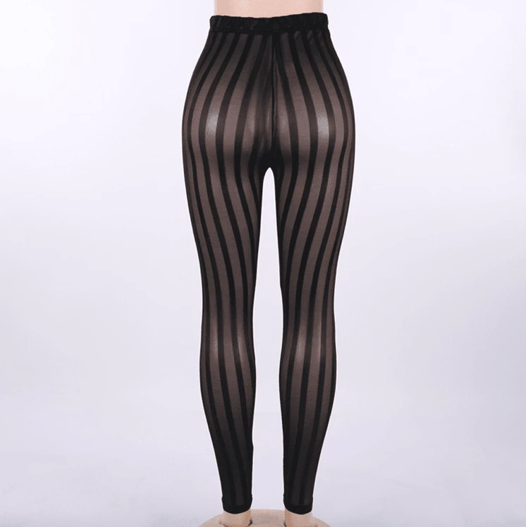 Produktdetails: Transparente Mesh Leggings mit Streifen Effekt. Super stylische Festival & EDM Party Outfit.