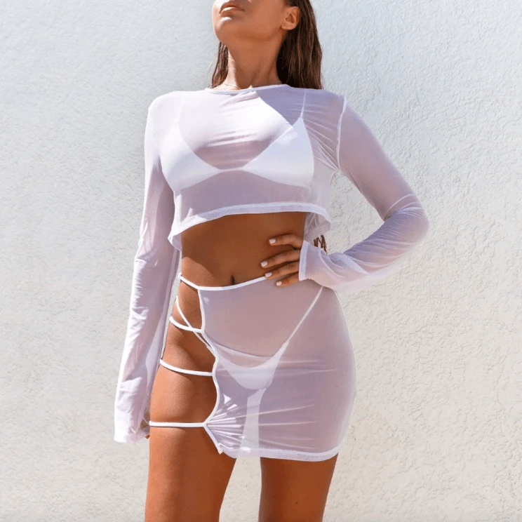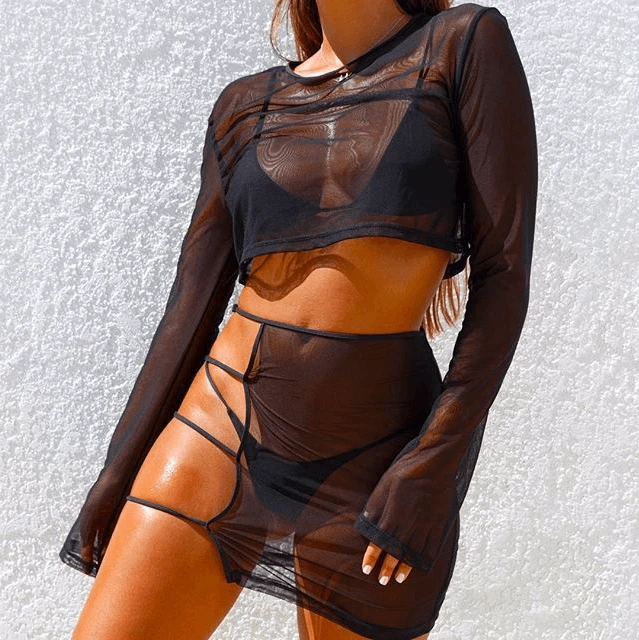 Produktdetails: 2er Set Ober- und Unterteile. Mesh Rock und Oberteil mit langen Armen. Rock mit Öffnung auf der Seite.
