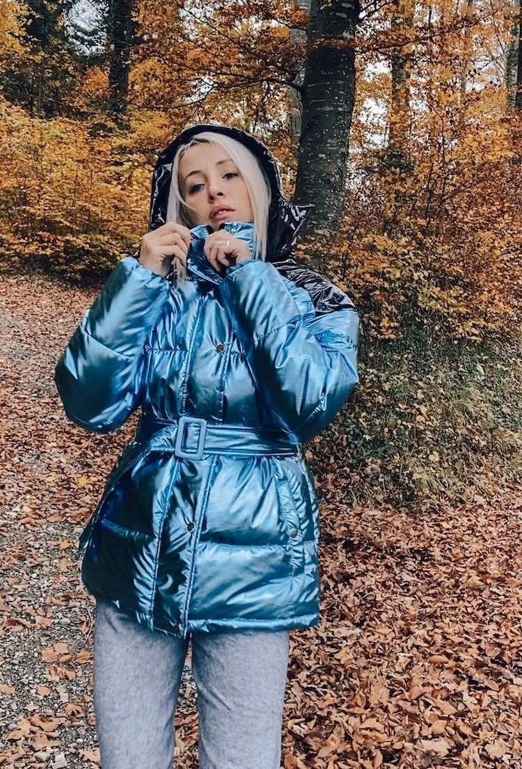 - Produktdetails: Der absolute Trend und Hingucker vom Winter, die Metallic Bomberjacke! Super warme und stylische Jacke mit Taschen auf der Seite, Kapuze und Gürtel zum Schnürren. Und das ganze im Metallic Look.
