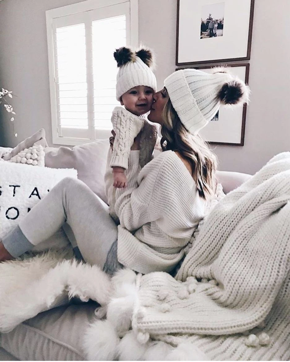 - Produktdetails: Winter Mütze mit 2 Kunstbommeln. Perfekt für Mutter und Tochter 🙂
