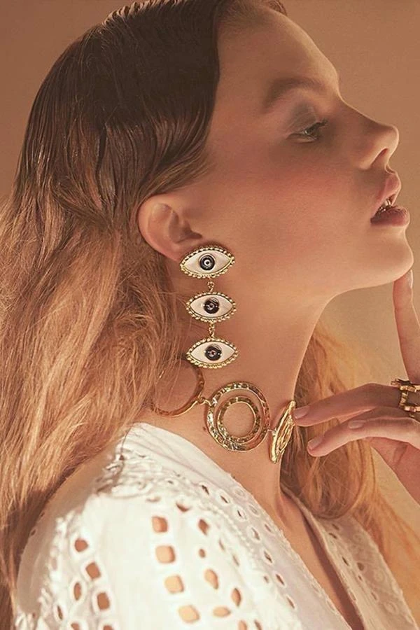Produktdetails: Lange Ohrringe mit 3 Fatima Augen.