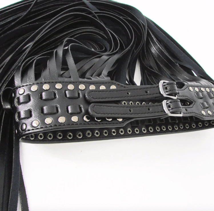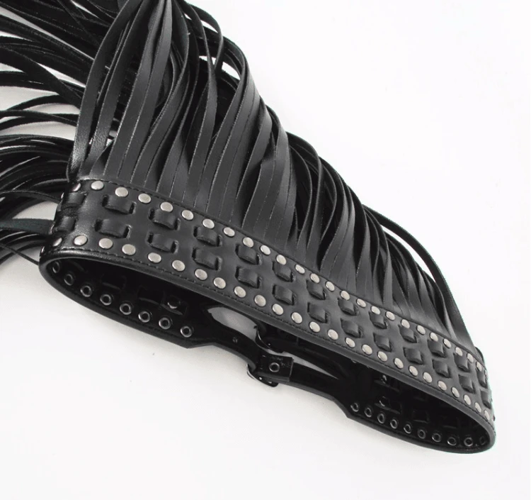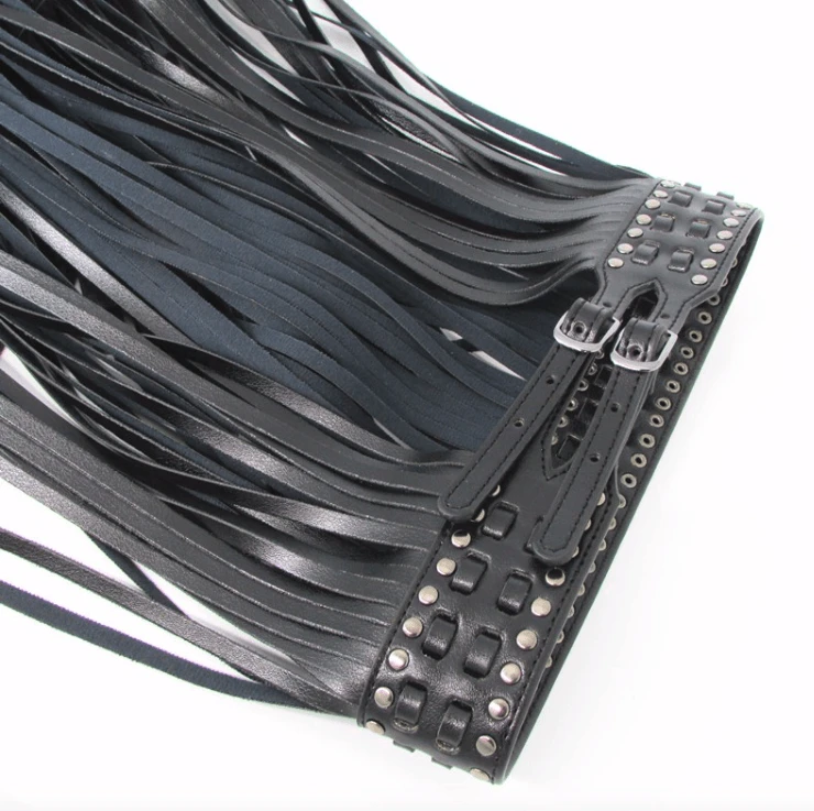 - Produktdetails: Qualitativer Kunstleder Fransen Rock mit Gurt und Nieten.