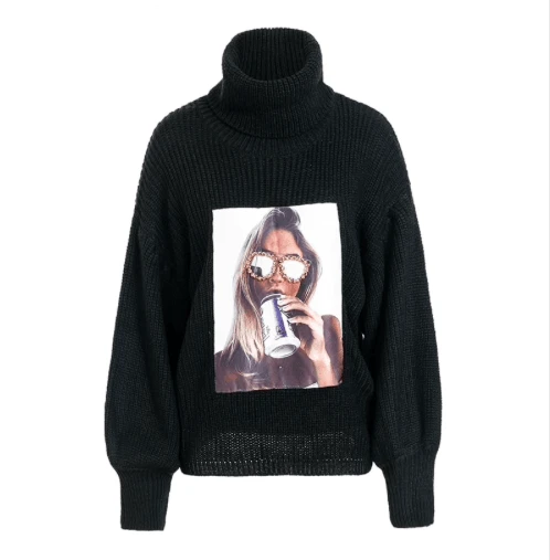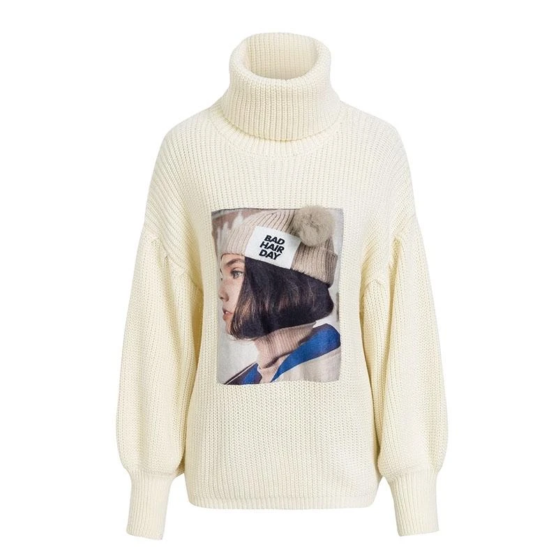 - Produktdetails: lockerer Rollkragen Pullover mit coolem Aufdruck auf der Vorderseite.
