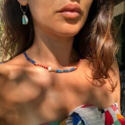 Produktdetails: Ergänze deinen Style mit dieser trendigen Halskette, die aus einer Kombination von roten kleinen Perlen, grösseren blauen Perlen und einer weissen Kunstperle besteht. Der einzigartige Mix aus Farben und Texturen verleiht dir einen modischen Look mit einem Hauch von Eleganz. Egal, ob für den Strand oder einen Abendausflug, diese Halskette ist das perfekte Accessoire, um deinen persönlichen Stil zum Ausdruck zu bringen und alle Blicke auf sich zu ziehen. Lass dich von der Vielseitigkeit dieser Halskette verzaubern und kreiere einzigartige Outfits.