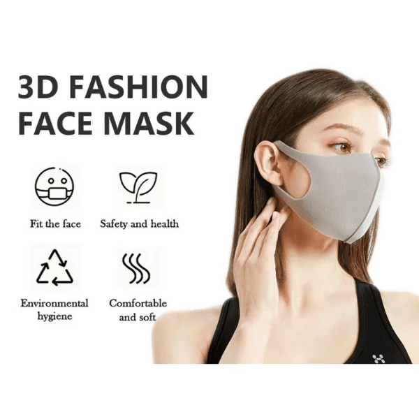 Produktdetails: Atmungsaktive und weiche Neopren Mässige 3D Stoffmaske. Maske besteht aus elastischem, waschbarem Stoff. 1-Lagige wiederverwendbare schwarze Atemschutzmaske im Set. Schütze dich vor Viren, Husten und Tröpfchen und trage eine Mund-Nasen-Bedeckung. Komfortable Tragekomfort und praktisch keine Hautreizung.