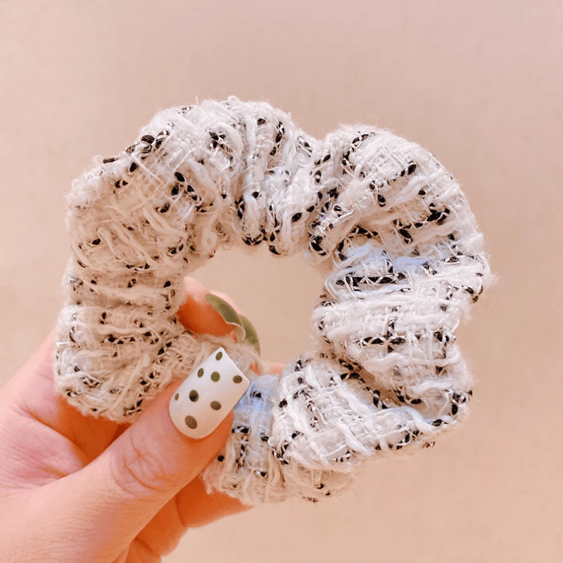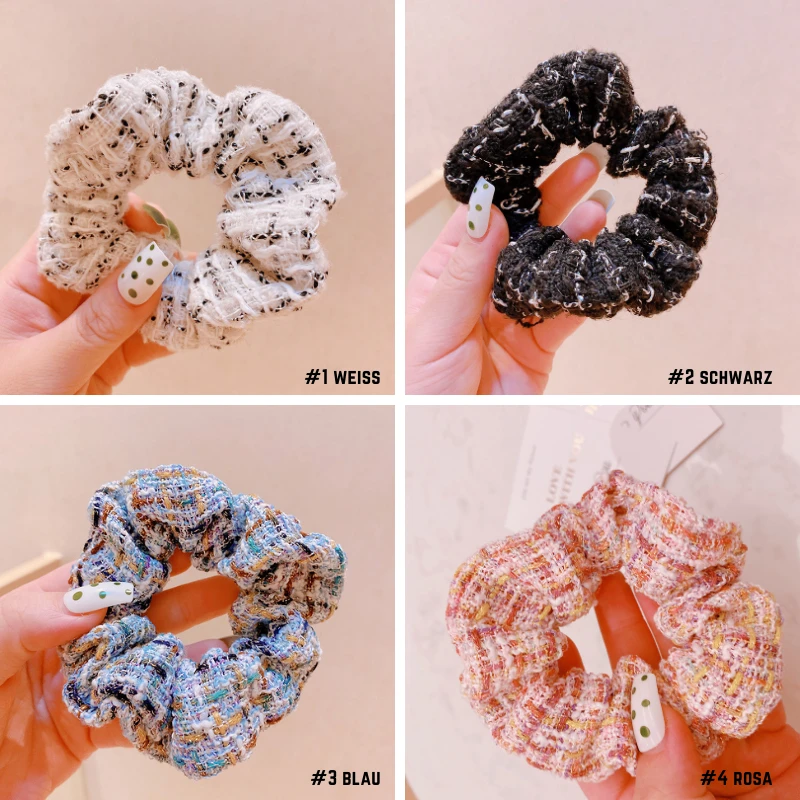 - Produktdetails: Elegantes Luxus Scrunchie Haargummi in diversen Farben und schönem Stoff Mustergewebe. Haargummi aus Tweed Chanel Stoff Style, perfekt Haar Accessoire. Trage das Haargummi auch als Armband mit Style.