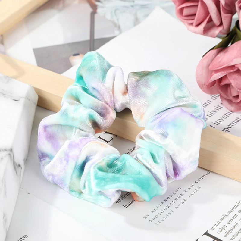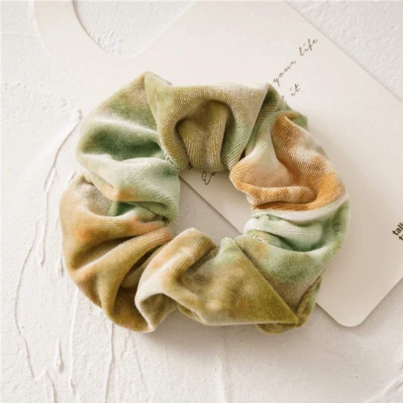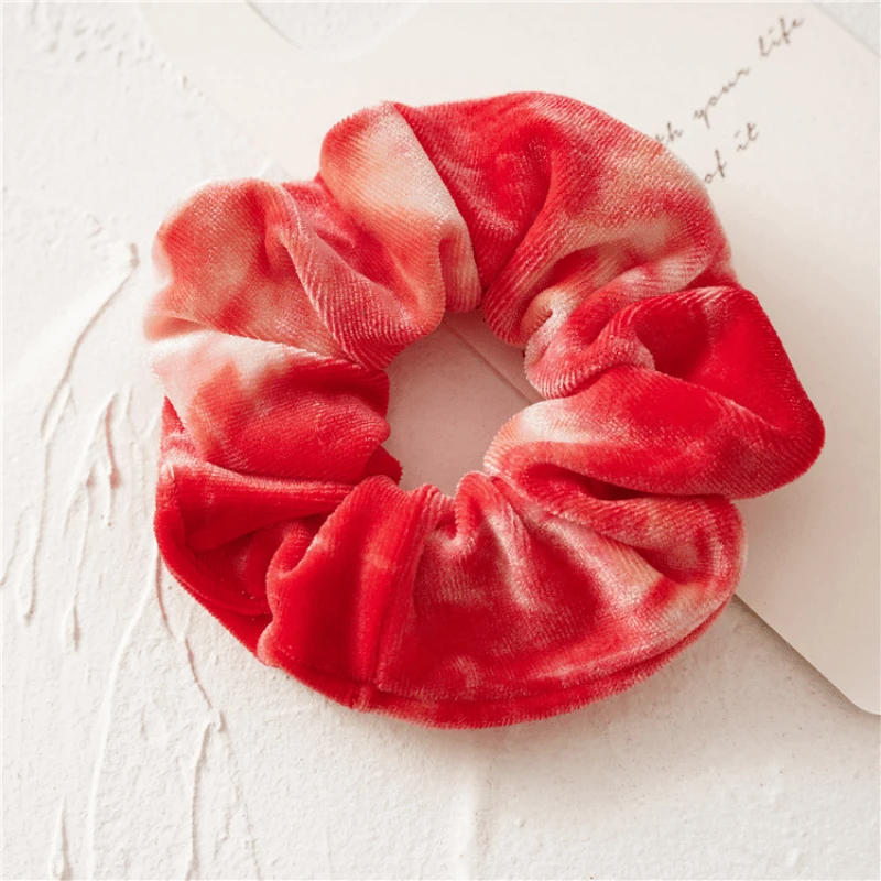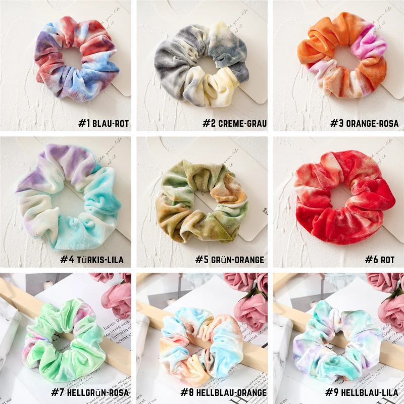 Produktdetails: Samt Scrunchie Haargummi mit Batik TIE Dye Muster in diversen Farben. Bohemian Style Haargummi Scrunchie aus Velvet Stoff. Elastisches Haargummi im Scrunch Look. Haar Accessoire kann auch als Armband getragen werden.