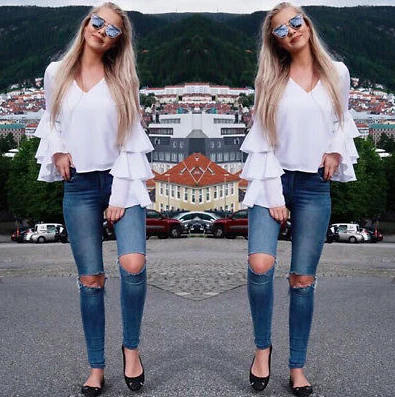 - Produktdetails: Bluse mit breiten Ärmel und Schmetterlings-Effekt