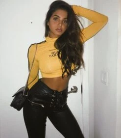 - Produktdetails: Rollkragen Crop Top Shirt mit Quentin Tarantino Aufschrift