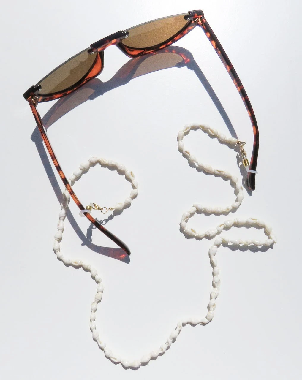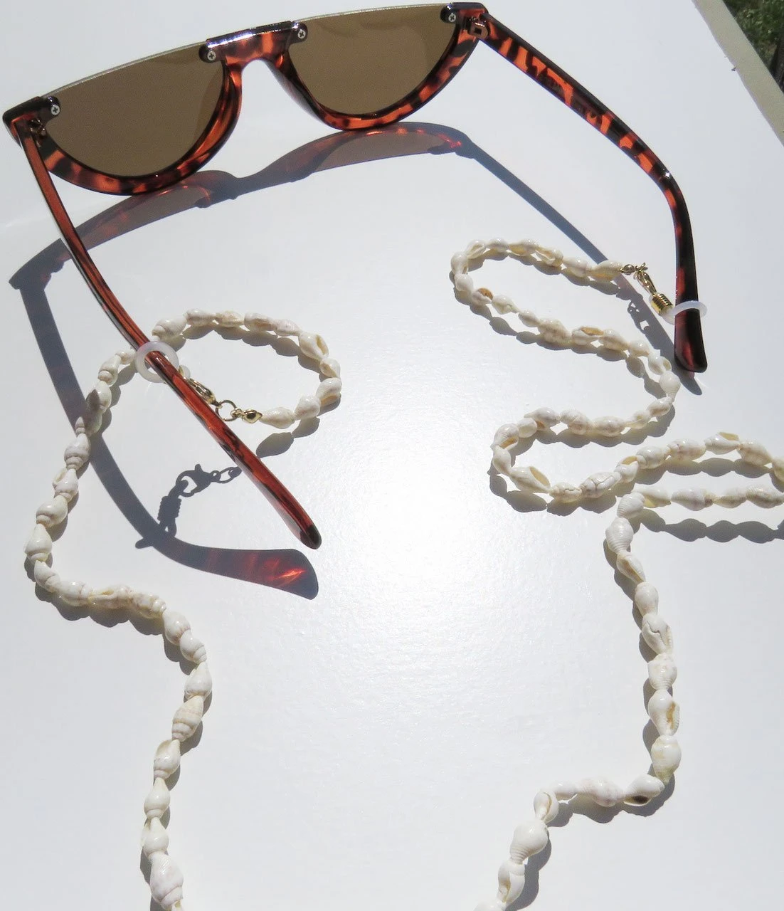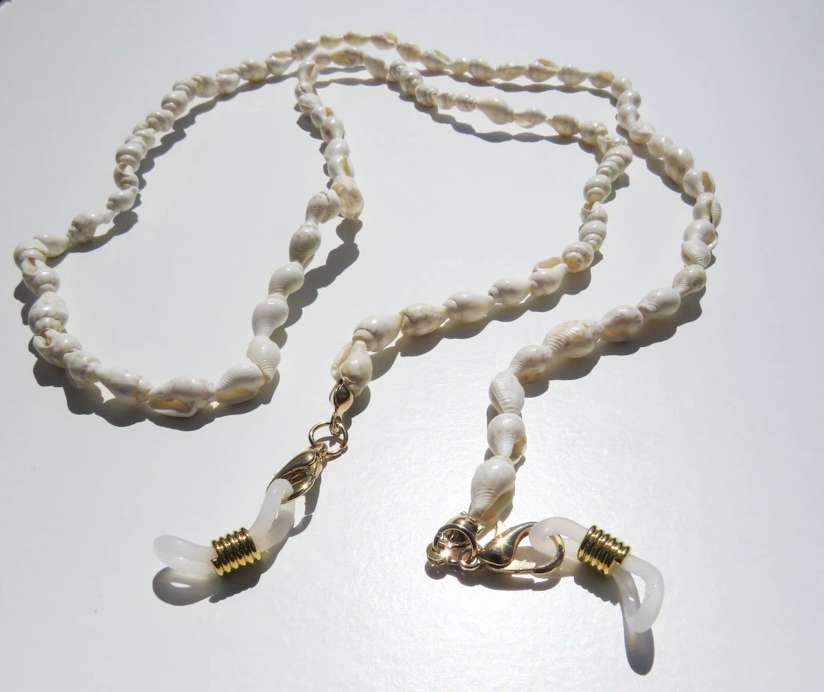 Produktdetails: Sonnenbrille / Brille Ketten aus kleinen Muscheln. Bohemian Strand Style Brillenkette aus Muscheln. Kann auch als Maskenkette verwendet werden.
