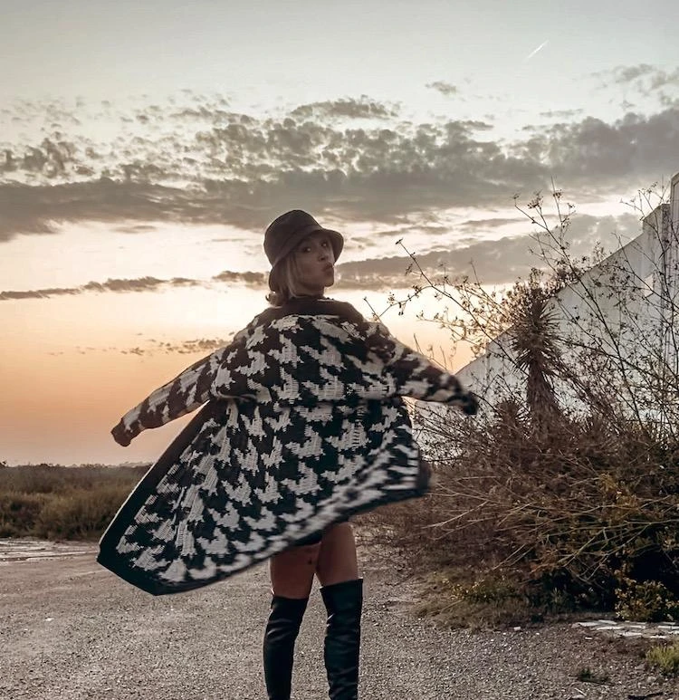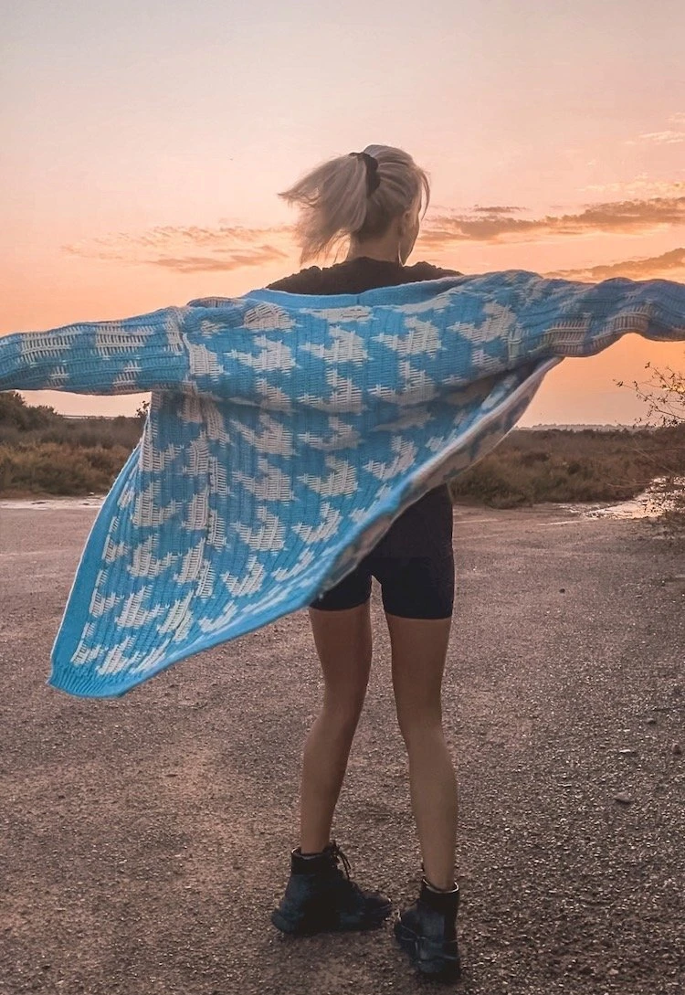 Produktdetails: Kimono / Cardigan mit kariertem Muster. Perfekt für die kalten Wintertage. Langer kuschelige Strickjacke aus Alpaka Material.