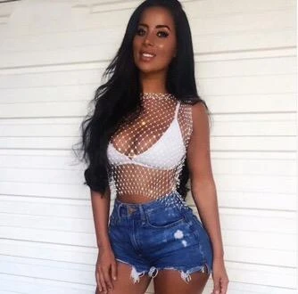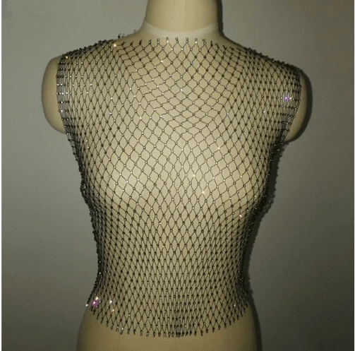 - Produktdetails: Netz Shirt mit Kragen und vielen Glitzersteinen.