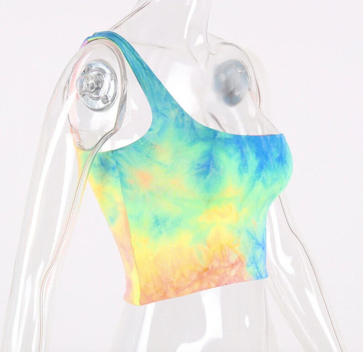 Regenbogen Farben. Einseitiges Ärmel Top.