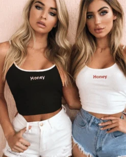 - Produktdetails: Crop Top mit Aufschrift: Honey | Tank Top mit Spaghetti Träger